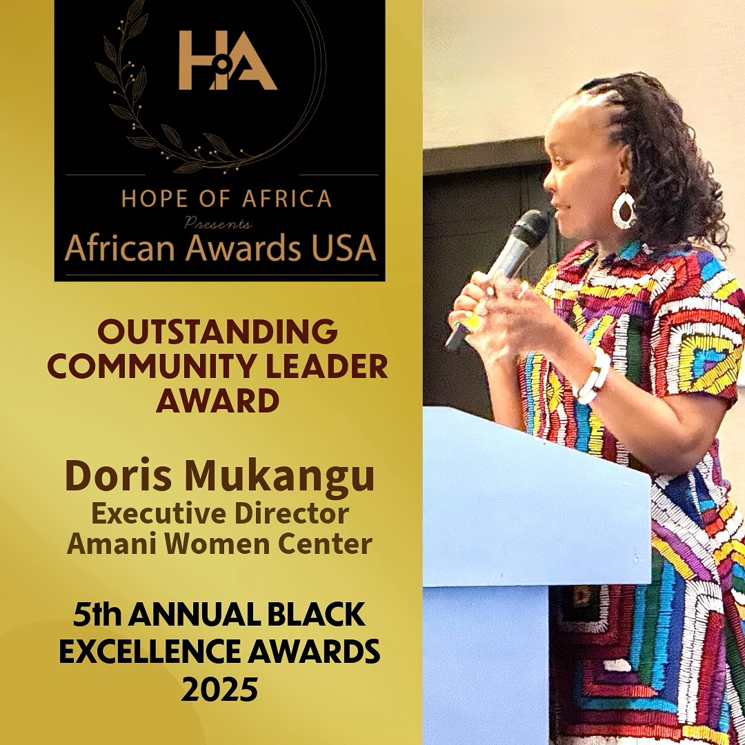 Doris Mukangu was honored with the “Outstanding Community Leader Award” at the 5th Annual Black Excellence Awards, hosted by African Awards USA on Saturday, April 19, 2025. As the founder and executive director of Amani Women Center (AWC) — a 501(c)(3) nonprofit based in Clarkston, Georgia—Doris has dedicated herself to uplifting women and families in her community.